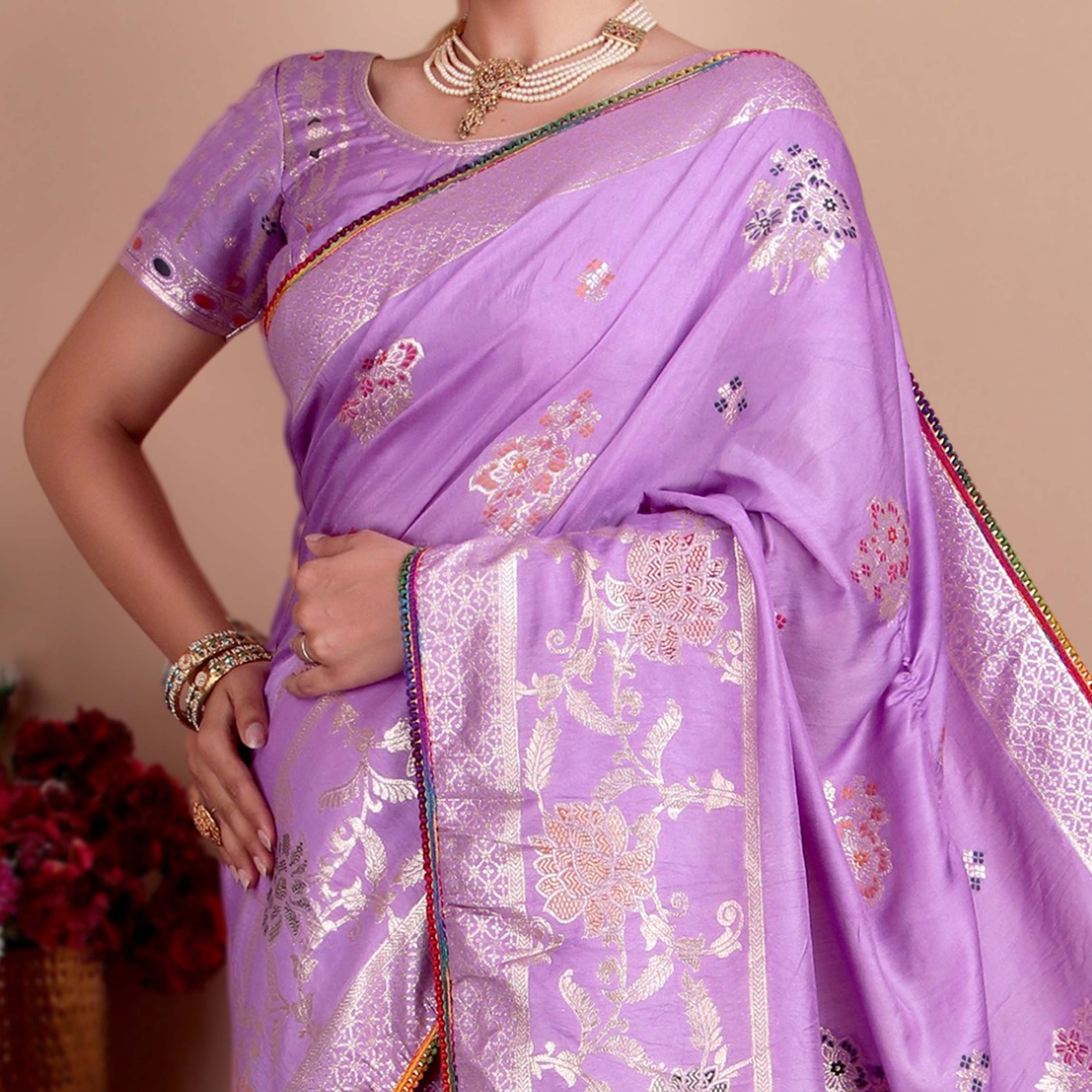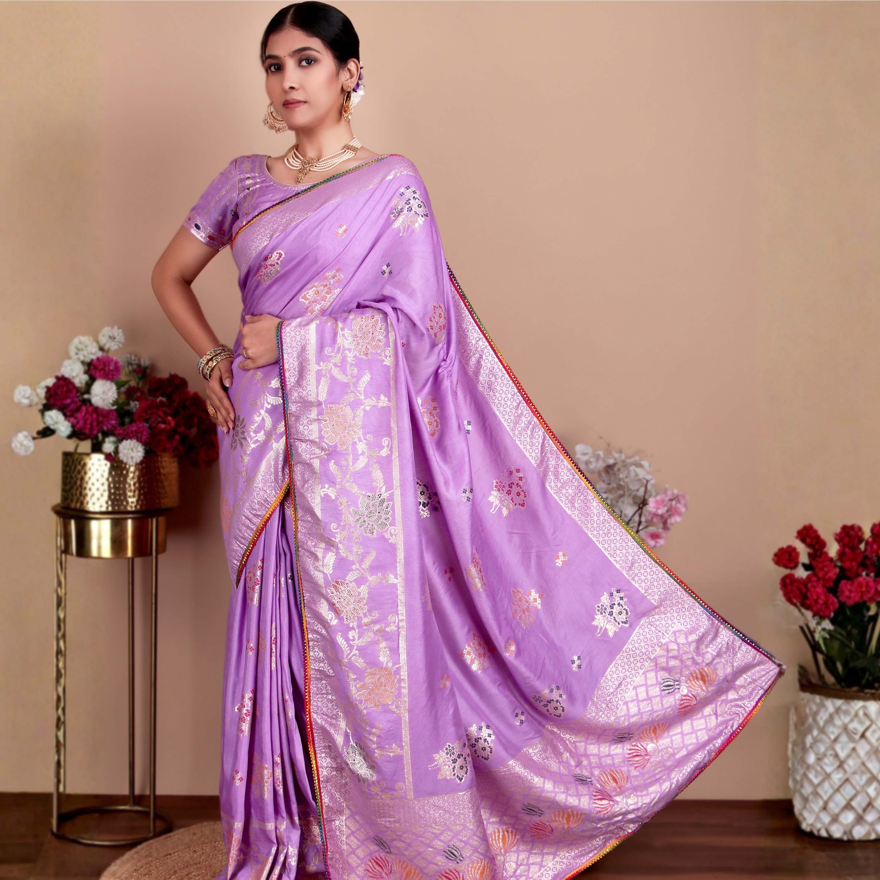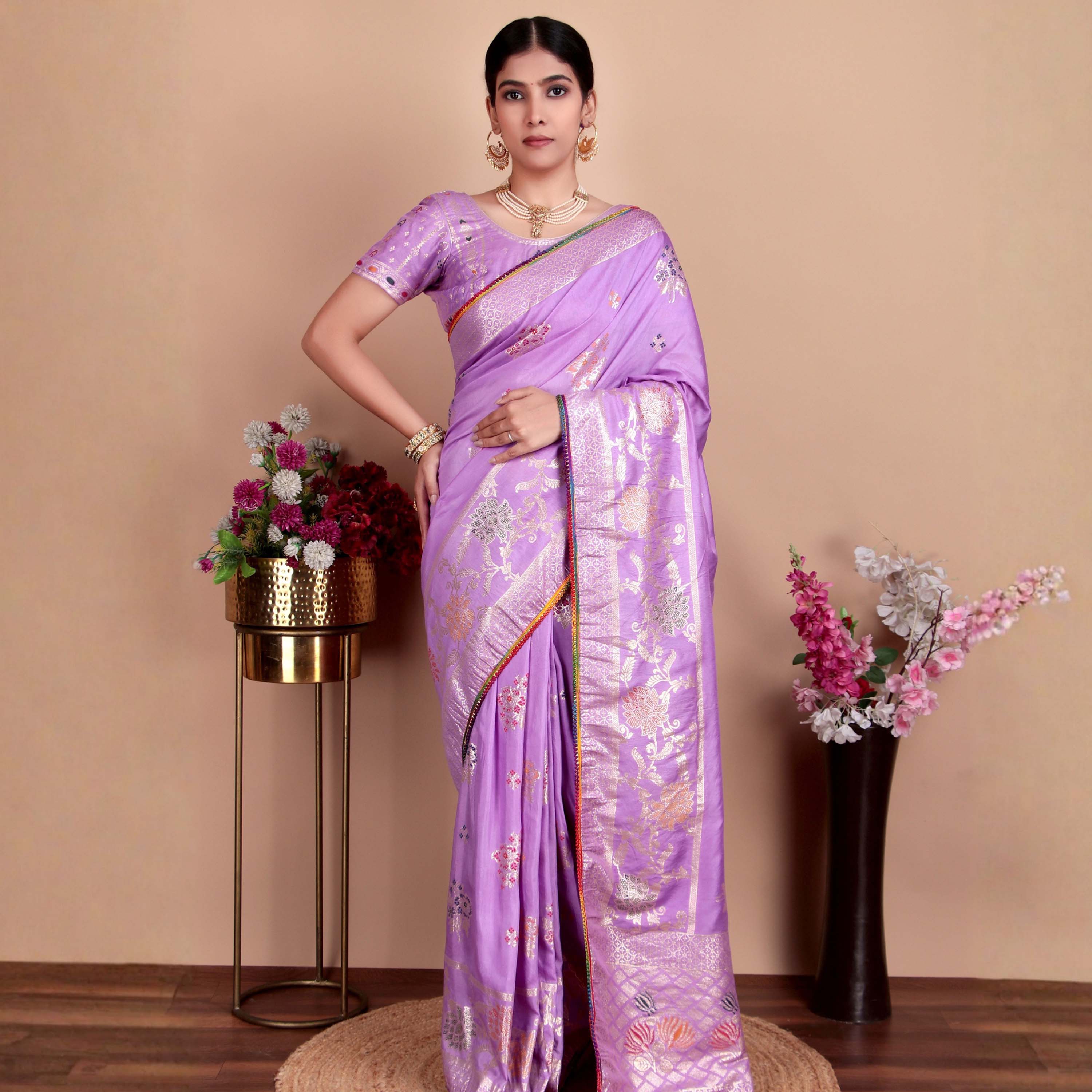 Lavender Viscose Dola Silk Saree with Zari Weaving Work
