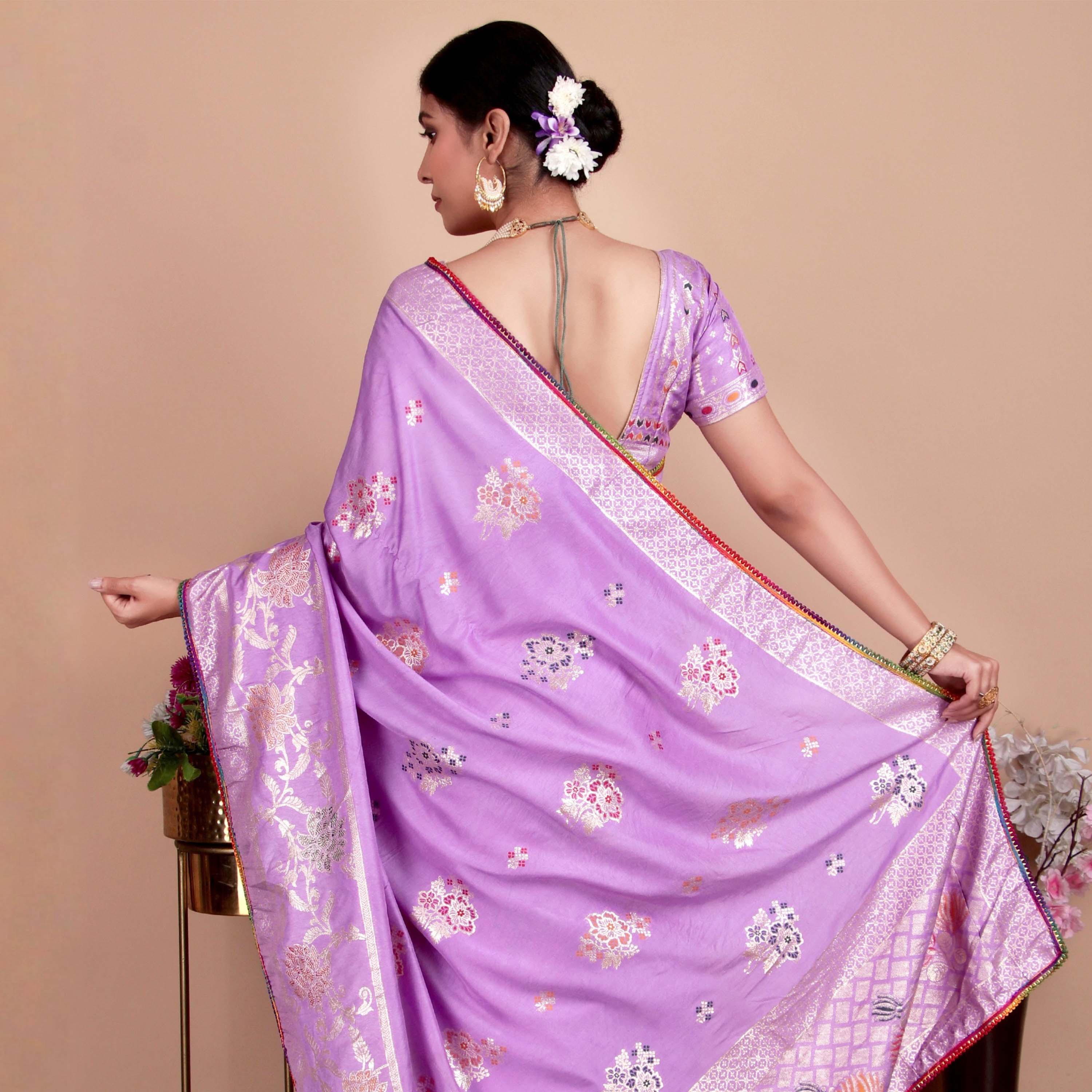 Lavender Silk Saree with Gold Crush And Designer Detailing