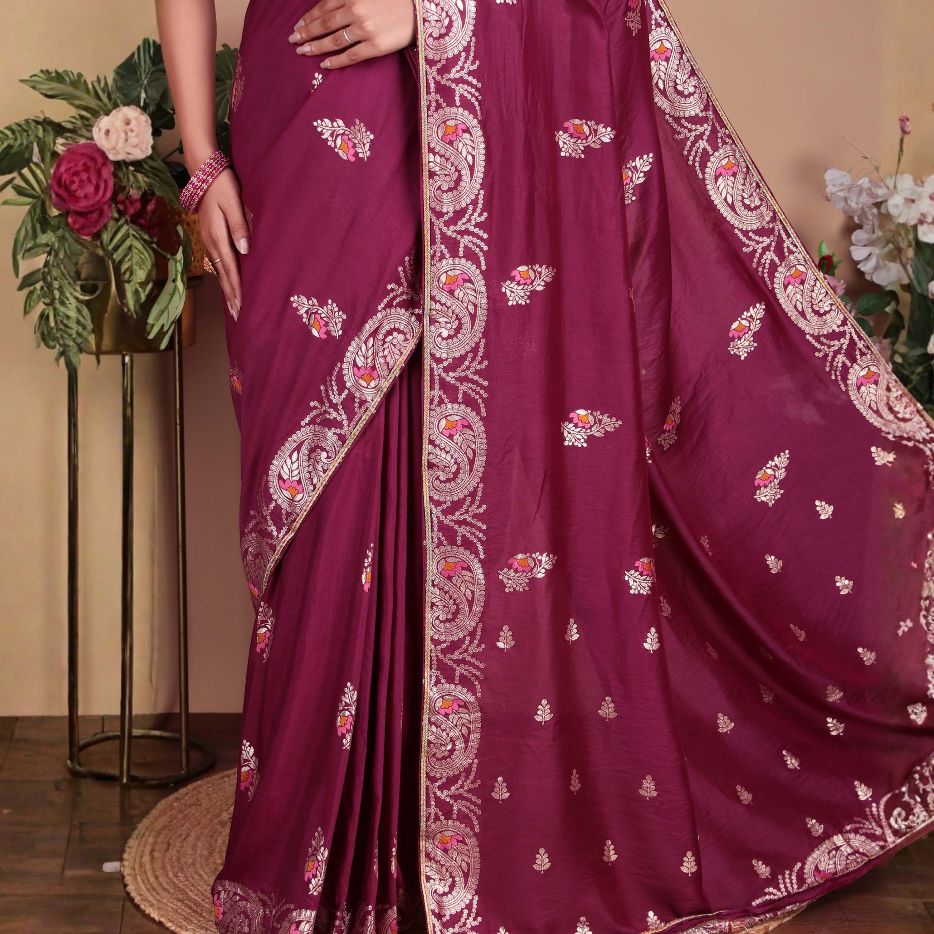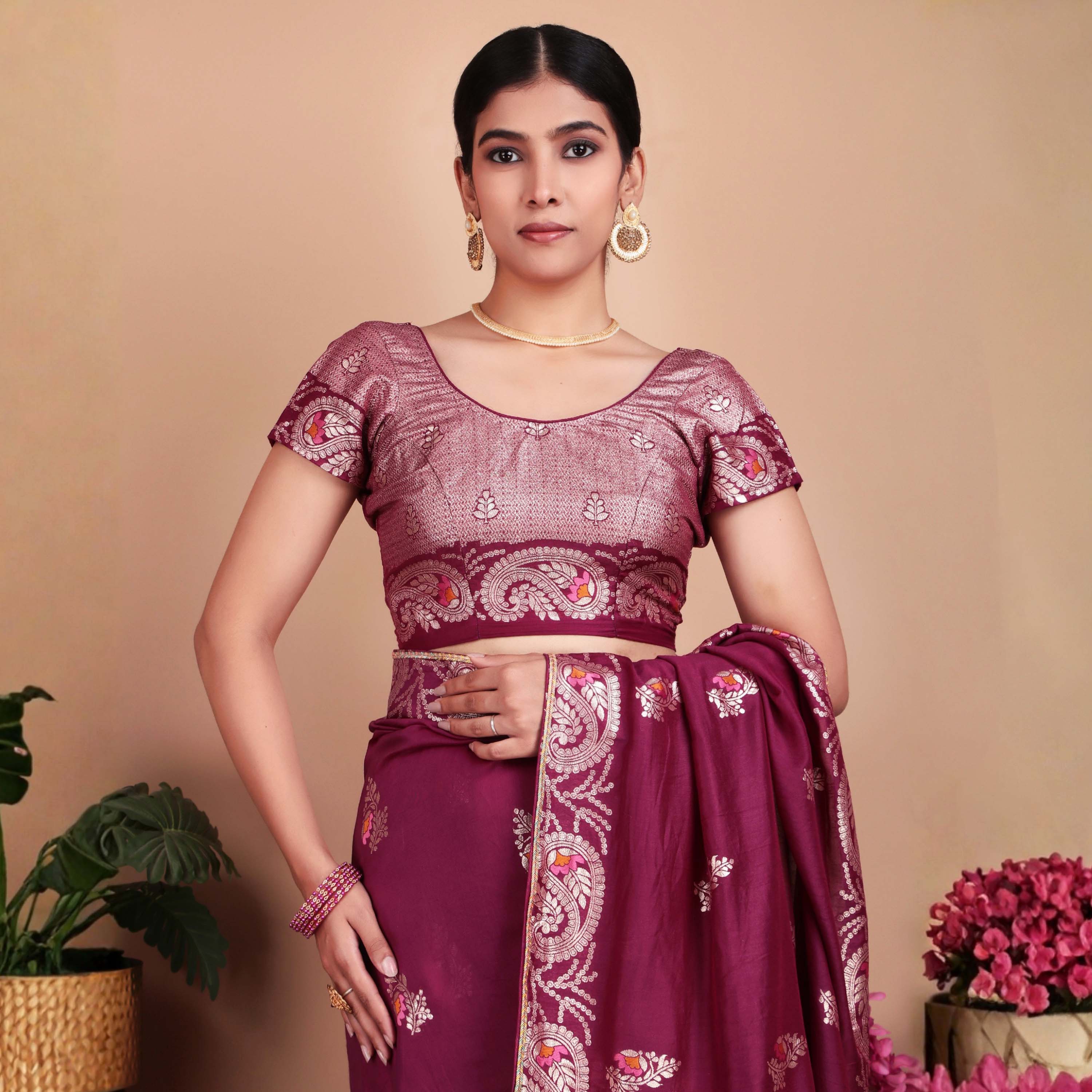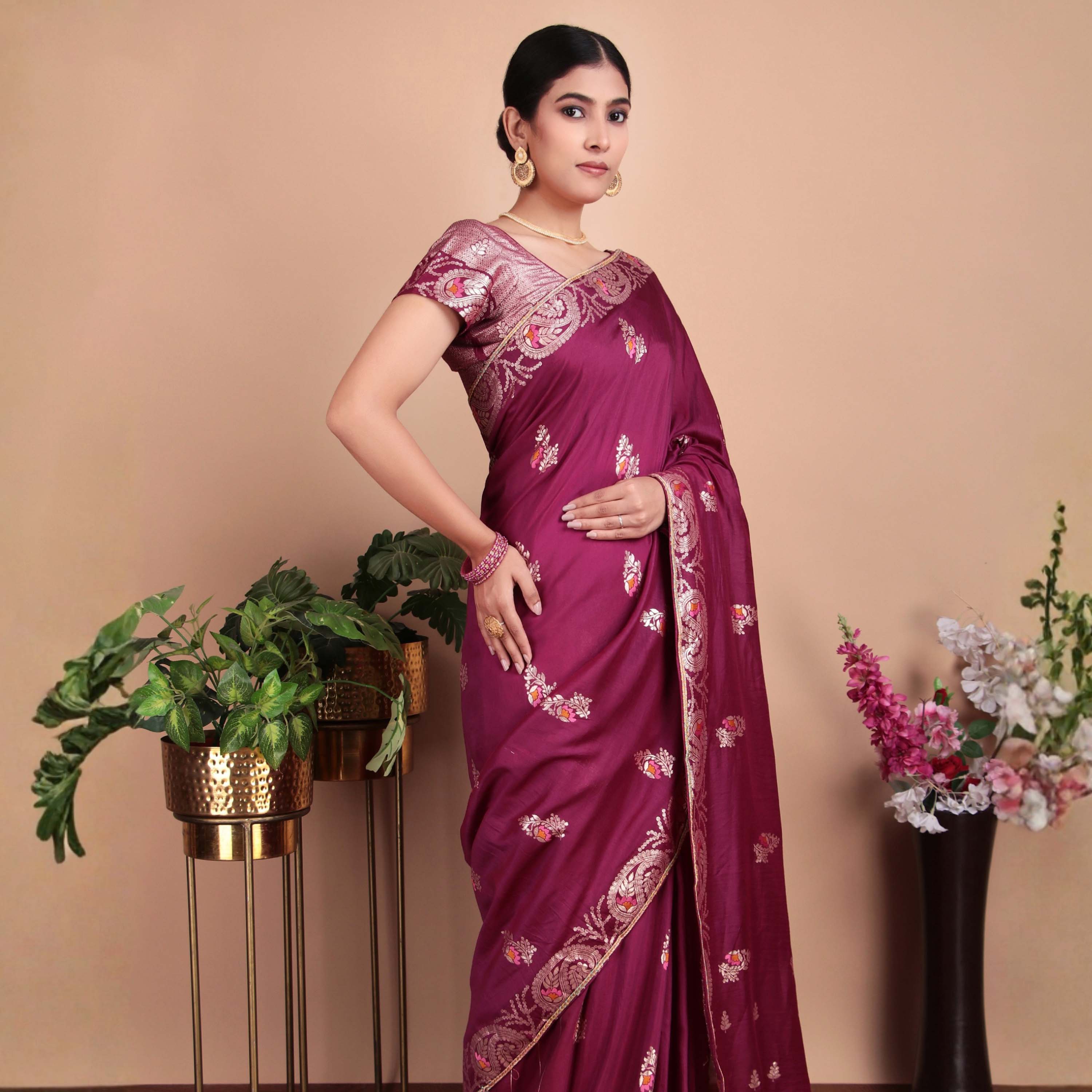 Magenta Viscose Dola Silk Saree with Elegant Weaving Work