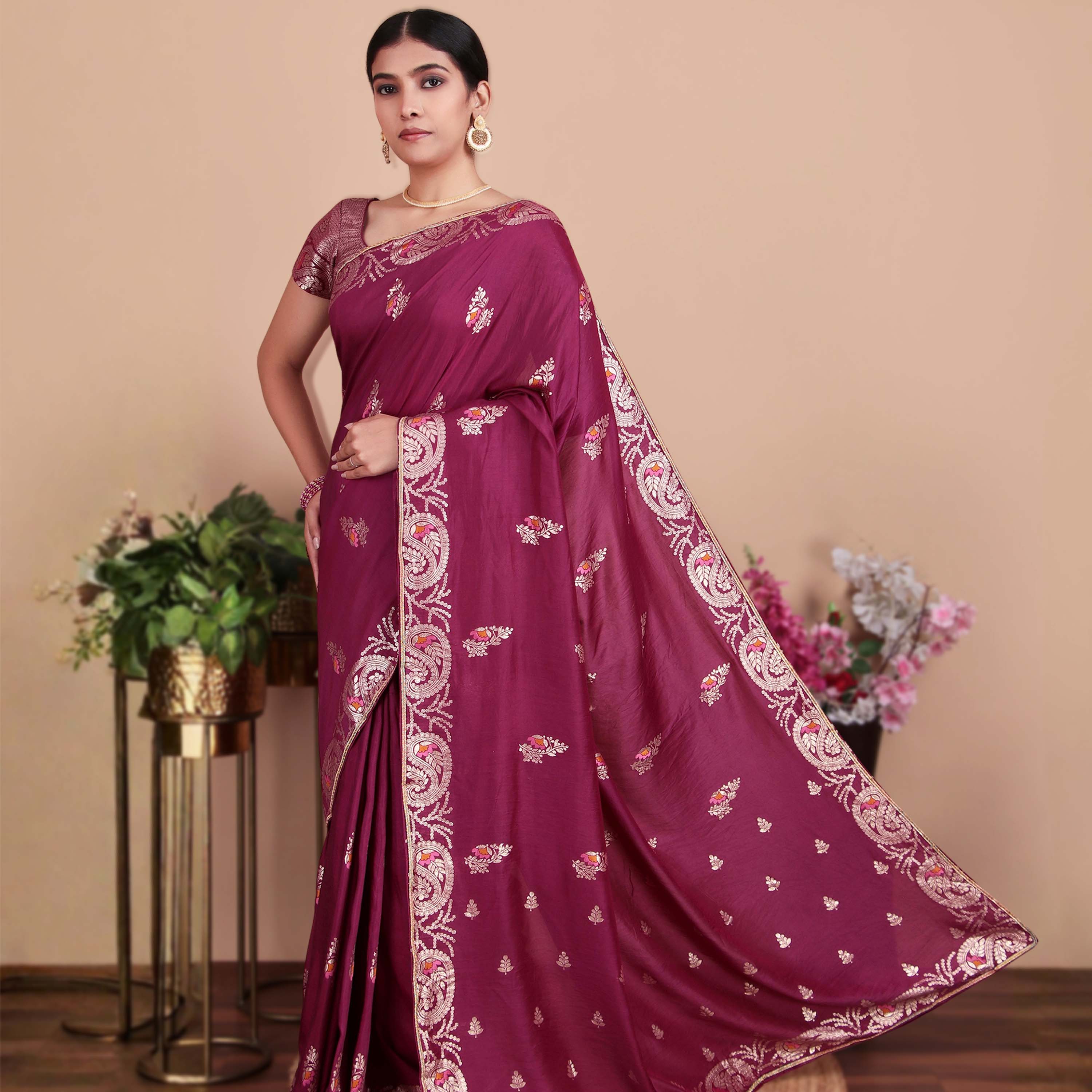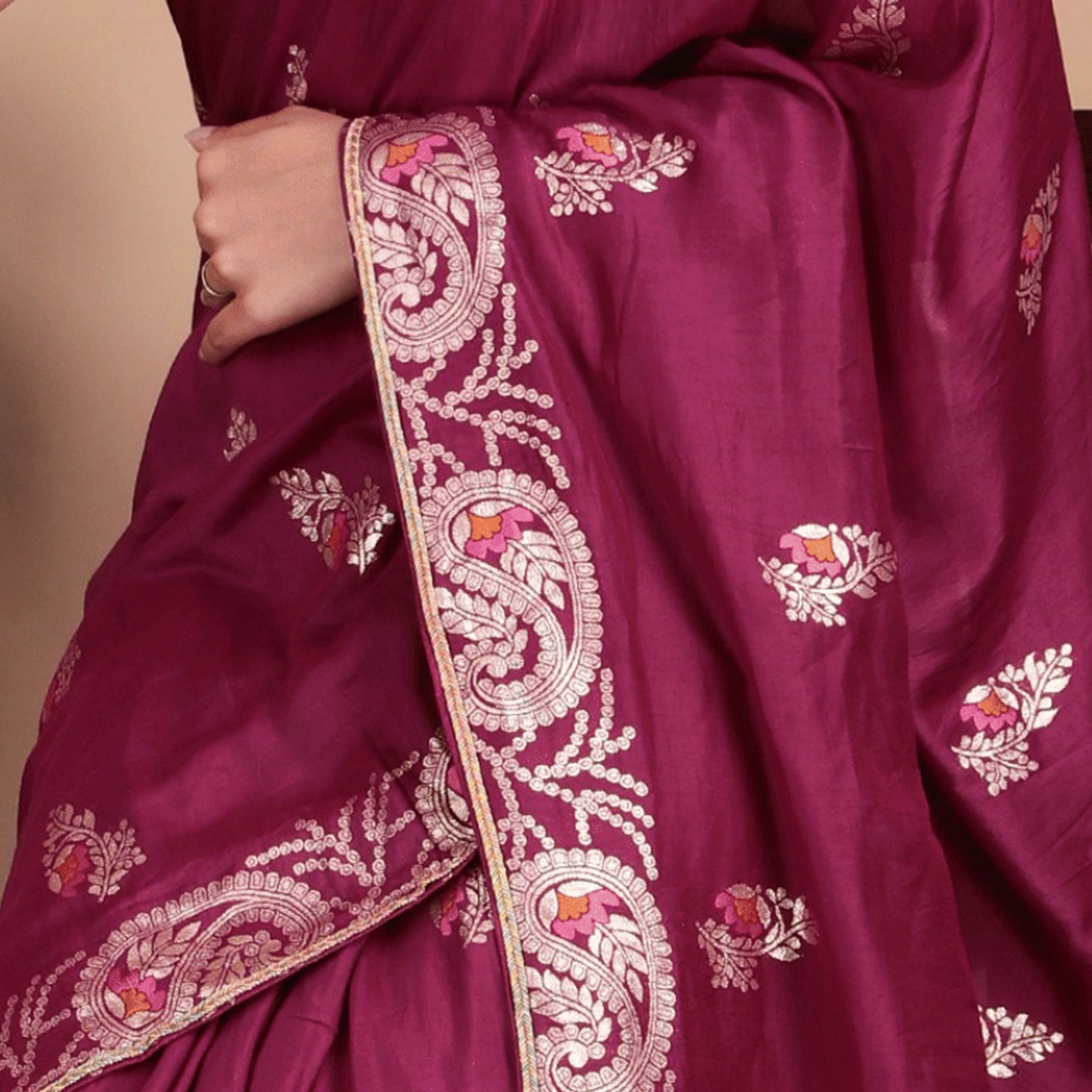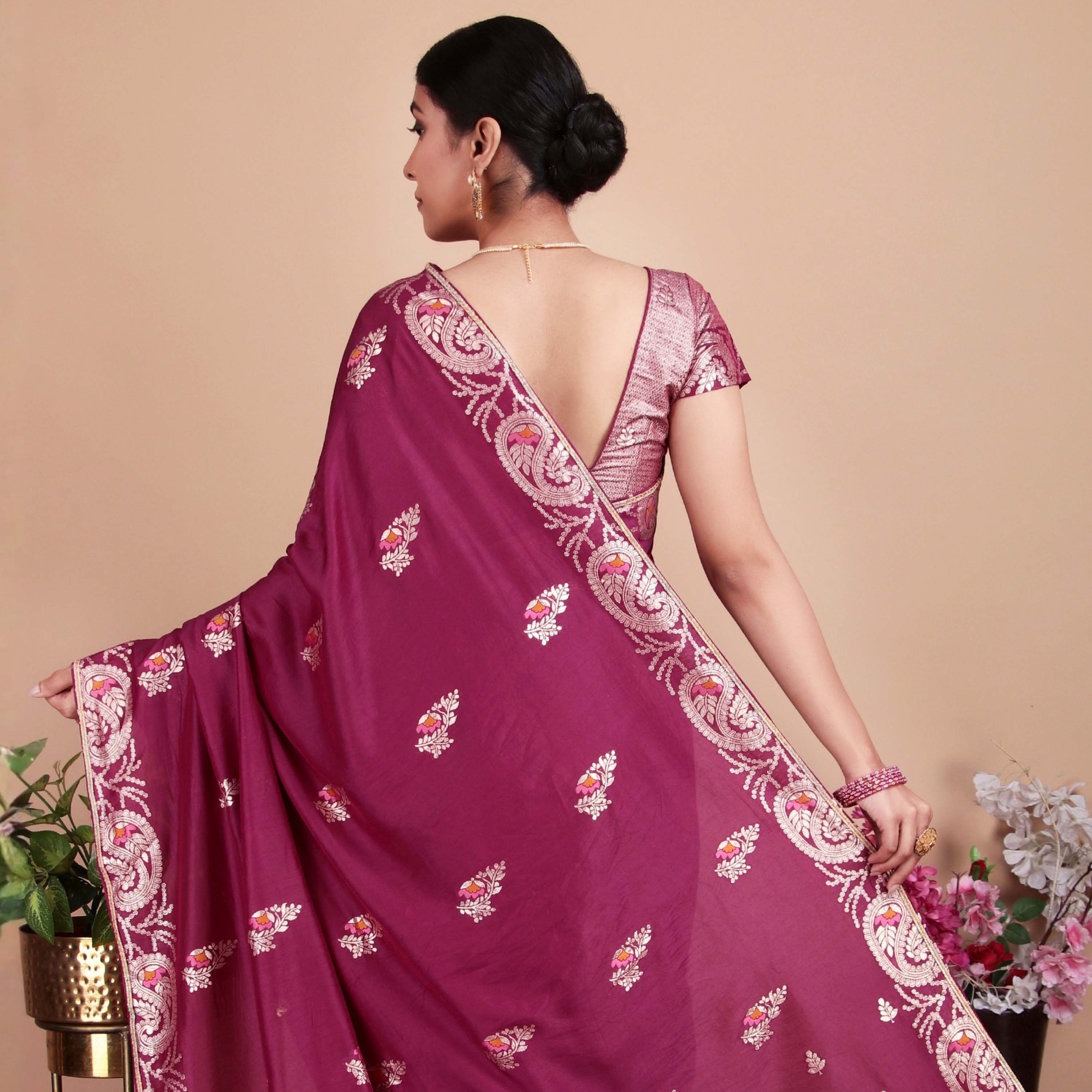 Magenta Viscose Dola Silk Saree with Elegant Weaving Work