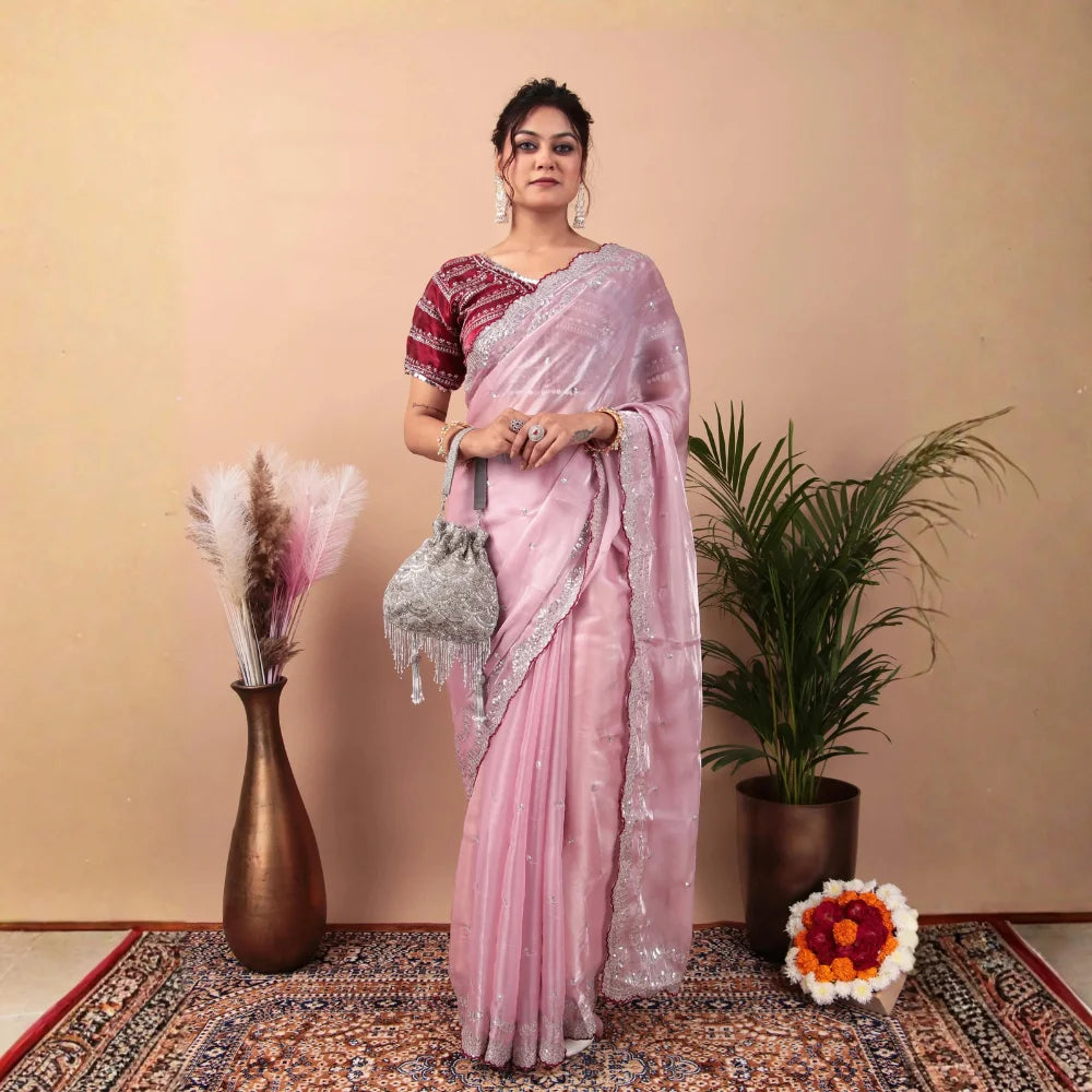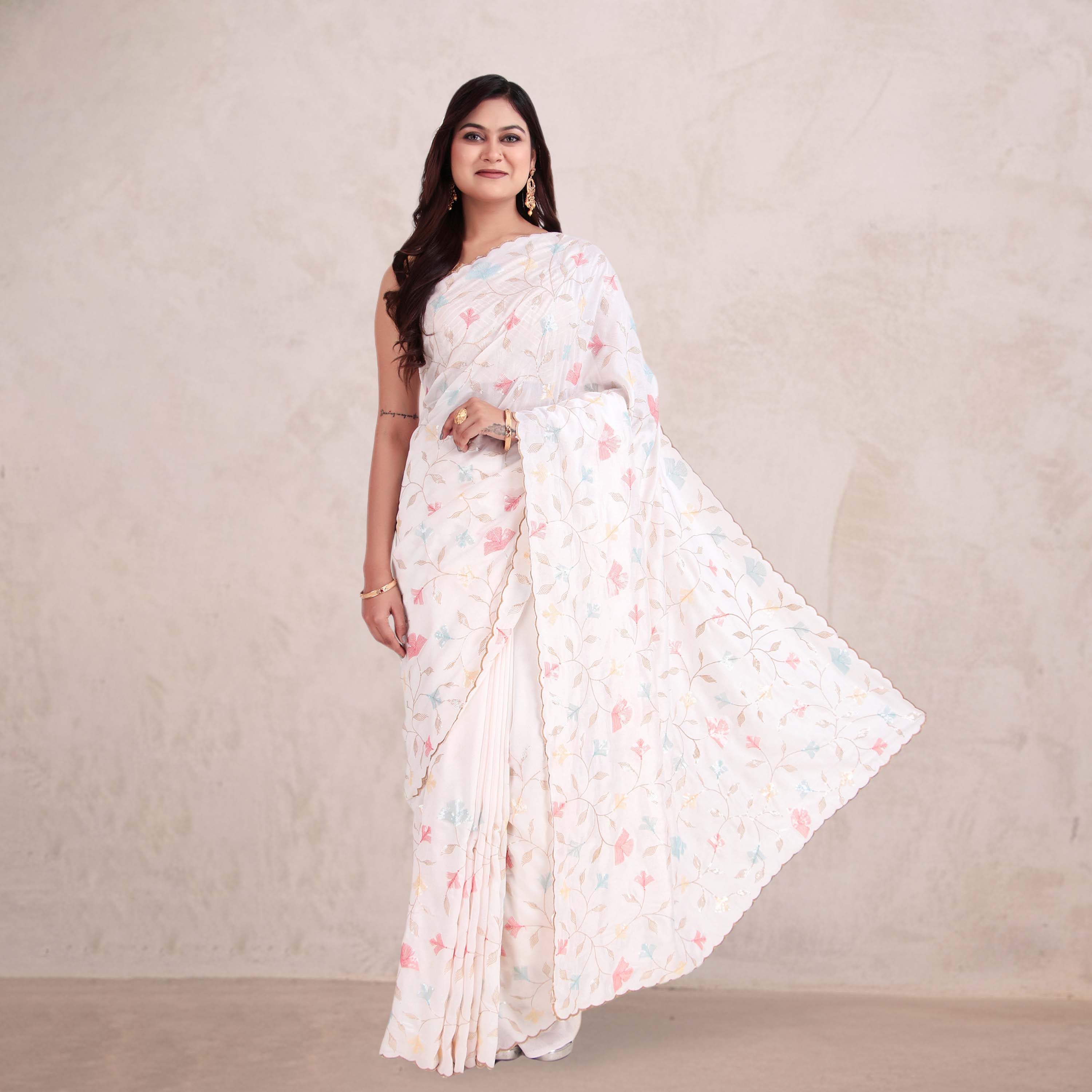 Dry clean only to maintain the fresh color and preserve the delicate sequence and thread work.